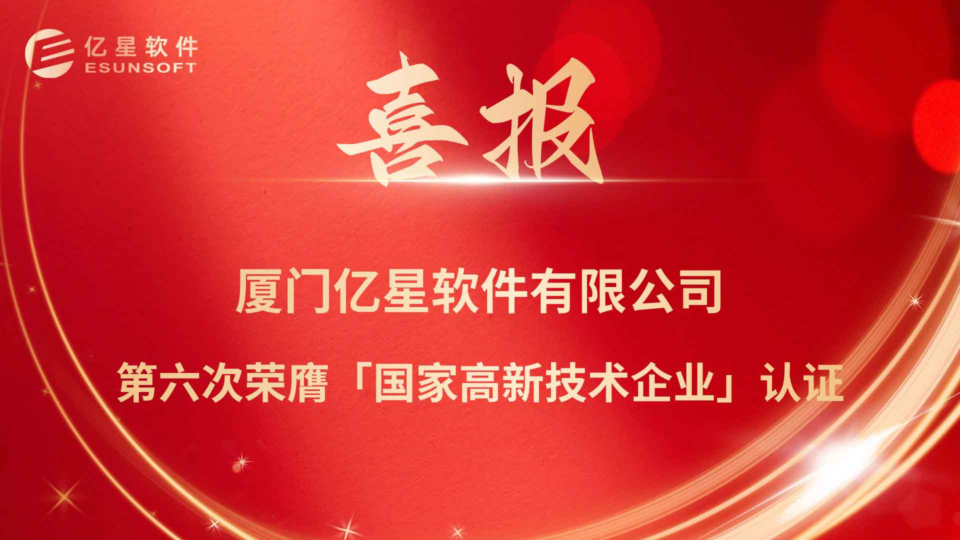 荣耀再续,亿星软件再度通过国家高新技术企业认定!